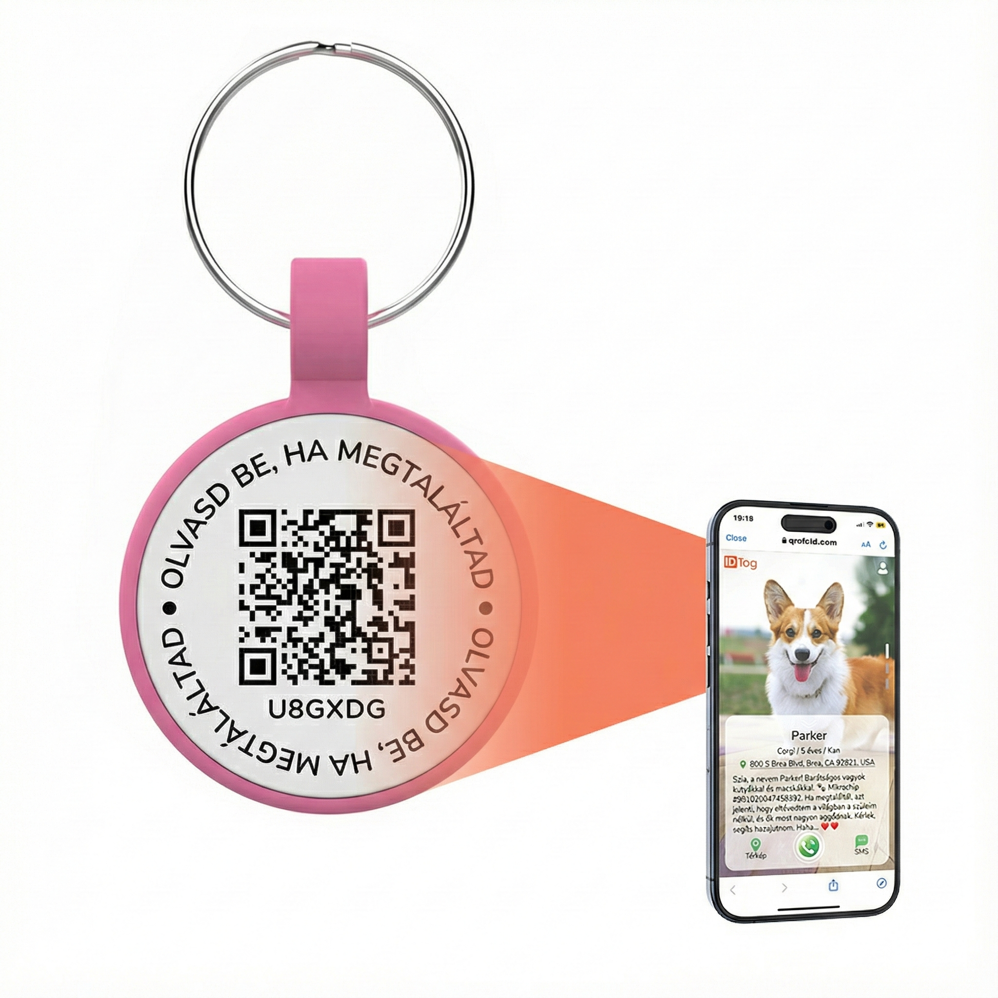 A beüzemeléshez nincs szükség semmilyen alkalmazás letöltésére. Egyszerűen olvasd be a bilétán található QR kódot a telefonod kamerájával (vagy érintsd az NFC-hez), ami automatikusan megnyitja a bilétához tartozó weboldalt. Itt regisztrálhatod a bilétát, és megadhatod kedvenced nevét, a te telefonszámodat, címedet vagy akár az állatorvos adatait. Ha valaki megtalálja az elveszett kedvencedet, csak beolvassa a bilétát, és a weboldalon keresztül azonnal hívni tud téged.